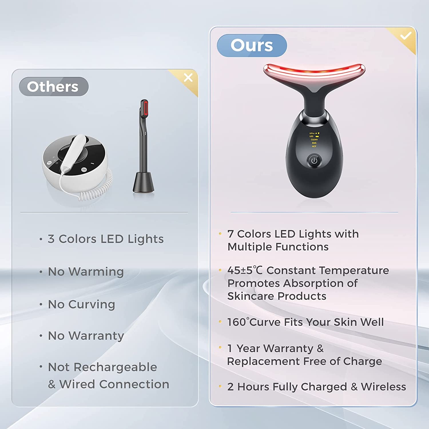 - 45±15°C nemainīga temperatūra veicina ādas kopšanas līdzekļu uzsūkšanos