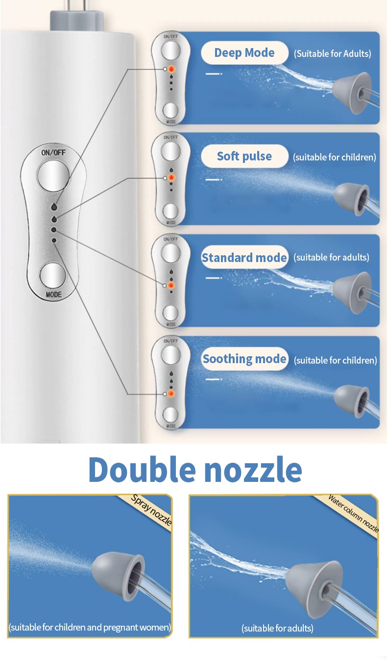 Iepakojums | 1gab ūdens flosser korpuss+3gab uzgaļi+1gab USB kabelis+1gab lietotāja rokasgrāmata+1gab dāvanu kastīte. |