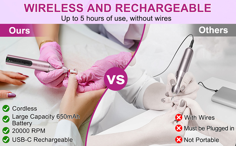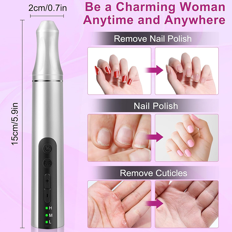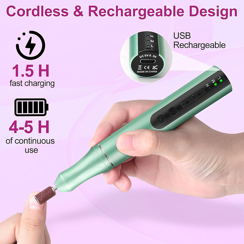 nagu urbjmašīnas akrila nagiem ir izstrādātas tā, lai tās būtu vieglas (85 g), un tās var ietilpt jūsu makā vai drēbju kabatā. Tam ir arī USB uzlādes kabelis, kuru var viegli pievienot jebkurai USB ierīcei uzlādēšanai, padarot to ērti baudot nagu kopšanu jebkurā laikā un vietā.