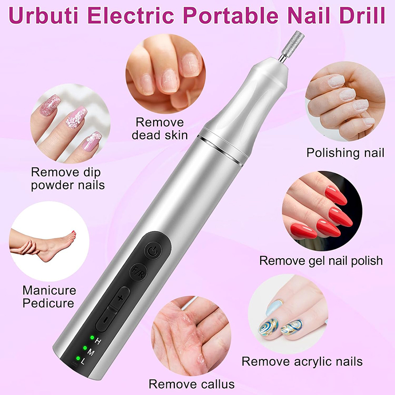 Nagu urbjmašīnā ietilpst 6 nerūsējošā tērauda naglu urbji, 1 keramikas urbis un 36 maināmas slīpēšanas sloksnes. Manikīra pedikīra komplektu var izmantot manikīram, pedikīram, pulēšanai, veidošanai, kutikulas slīpēšanai, akrila/gēla nagu noņemšanai vai nagu skaistumkopšanai. Komplektā ar piederumiem un viegli lietojams, lieliski piemērots nagu mākslas iesācējiem!