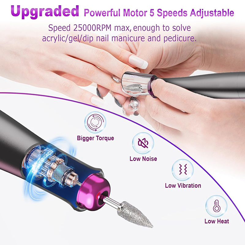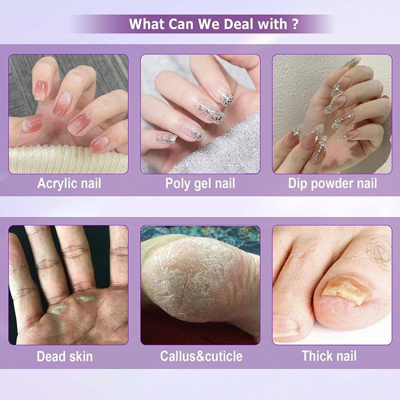 Elektriskā nagu urbjmašīna Uzlabotais jaudīgais motors ir lieliski piemērots visām jūsu manikīra un pedikīra vajadzībām, tostarp akrila nagu, poligēla nagu, vaboļu želejas, iemērc pulvera naglu, kutikulas, atmirušās ādas, ādas klepu un biezu nagu noņemšanai.