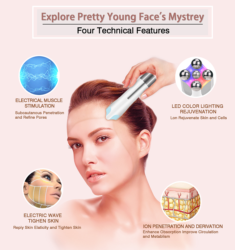 AUGSTS FREKVENCES SEJAS MASĀŽA — Attīrīšanas, iekļūšanas, liftinga un acu kopšanas režīmos ir augstas frekvences vibrācijas sajūta, kas palīdz stimulēt šūnu dzīvotspēju un veicina asinsriti. Tātad tas faktiski ir arī sejas masētājs.
