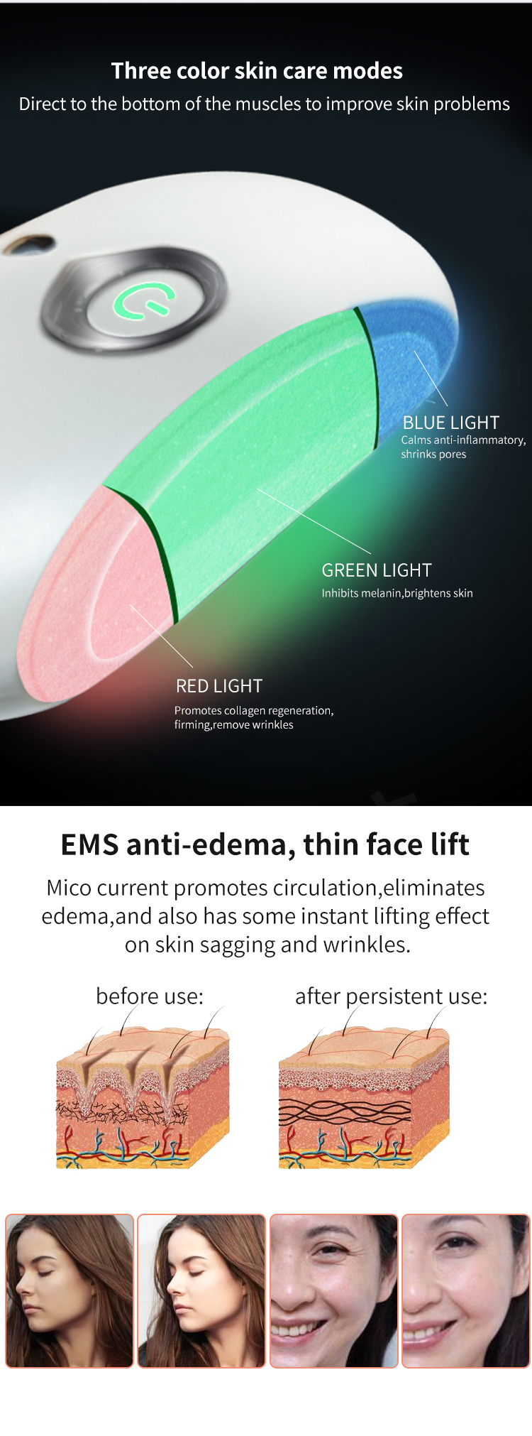 6. Kompakts izmērs, ērti nēsāt un lietot jebkurā laikā, ērta darbība Augstas frekvences vibrācija + mikro strāva, mikro strāva aktivizē šūnas un atjauno ādas elastību
