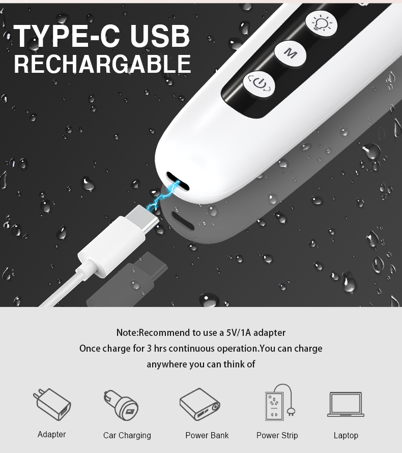 4:DC 5V 1A TYPE-C Uzlādes laiks: 3-4 stundas