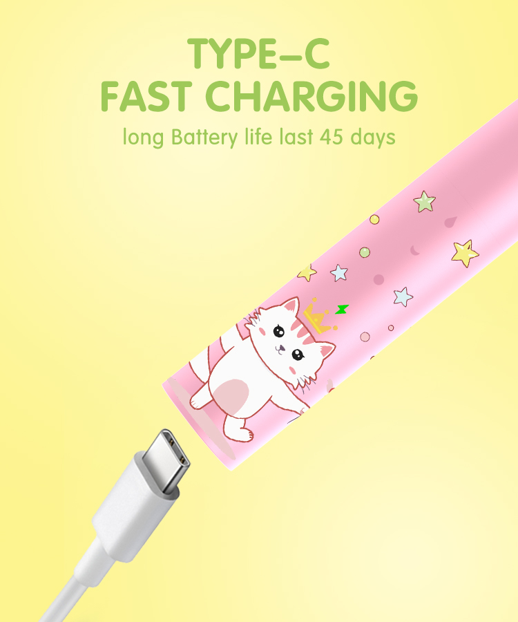 - ĪPAŠI ILGS DEGŠANAS Mūžs: Šai uzlādējamai bērnu elektriskajai zobu birstei nepieciešama tikai 3–4 stundu uzlāde un tā darbojas līdz 60 dienām. To ir viegli lietot mājās un ceļojuma laikā, lai pieturētos pie ikdienas zobu tīrīšanas.